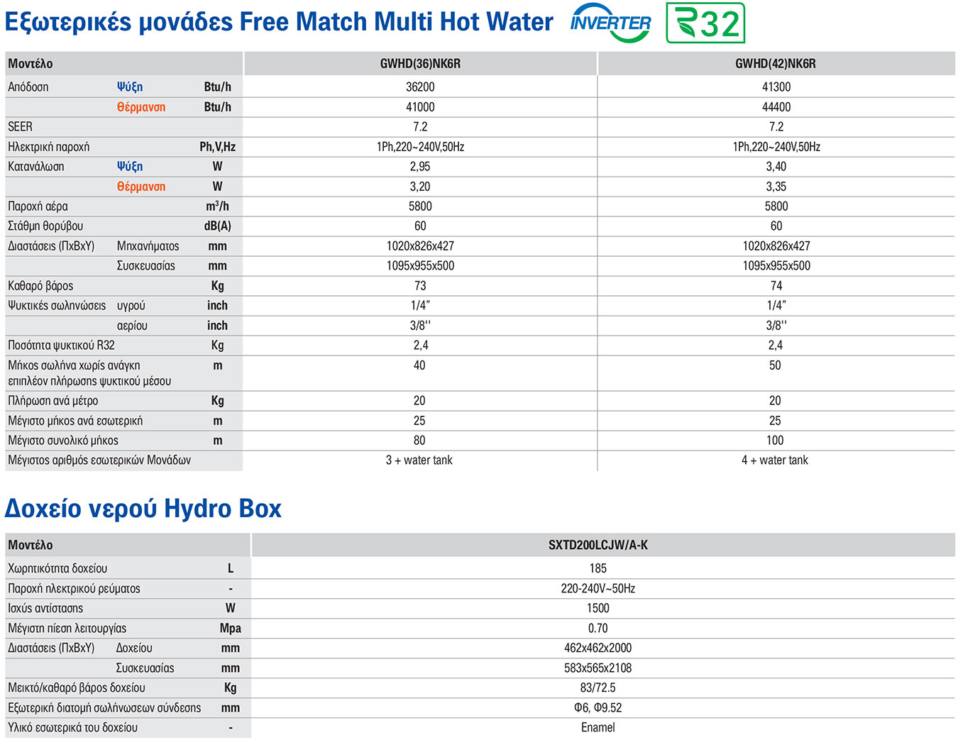 Εξωτερική Μονάδα Multi Gree Free Match Multi Hot Water R32 GWHD42NK6R χωρίς Hyro Box