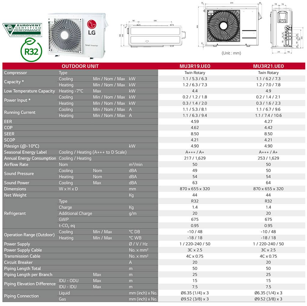 Εξωτερική Μονάδα Multi LG MU3R19U21 R32 Inverter 18000 btu - 21600 btu