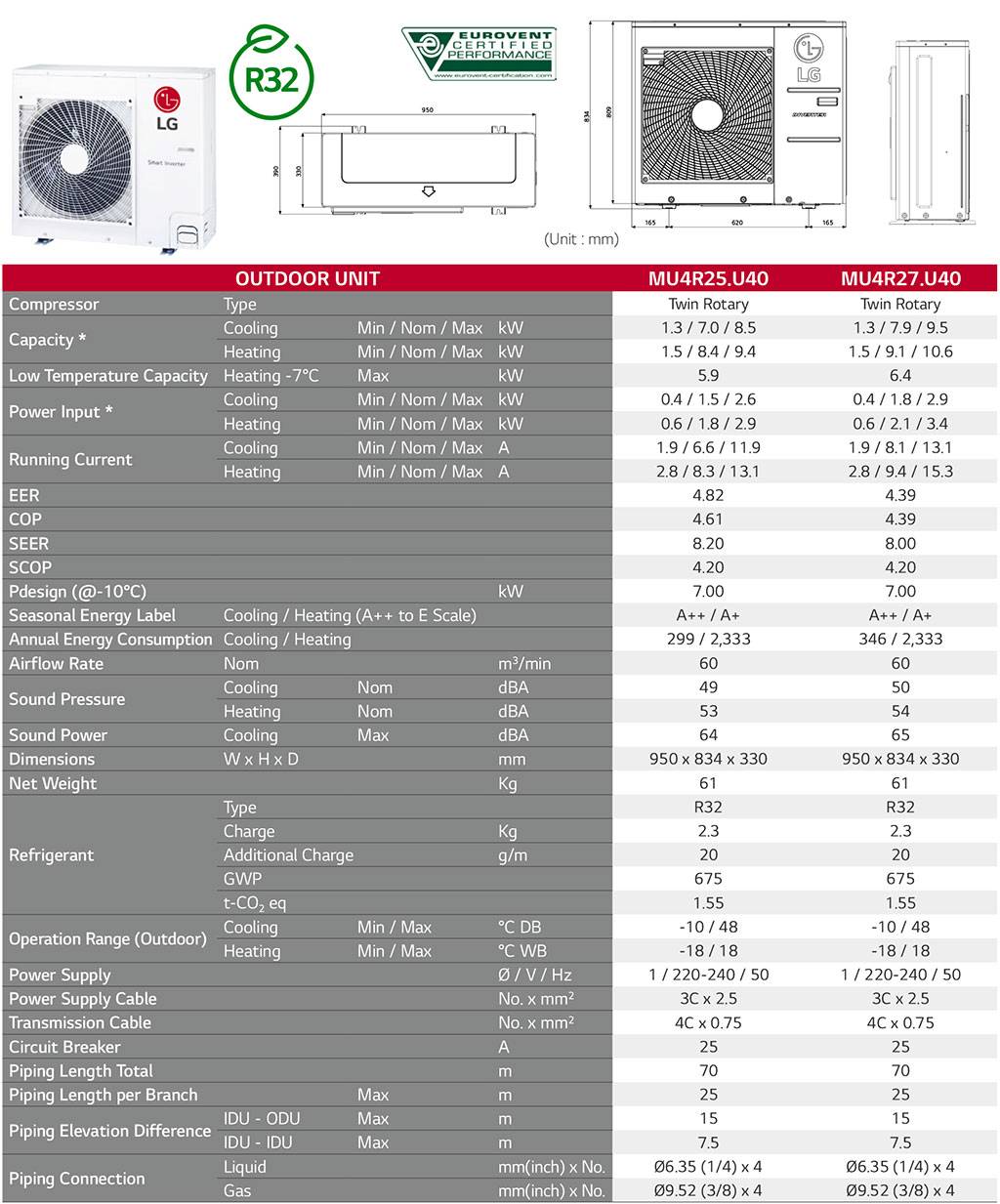 Εξωτερική Μονάδα Multi LG MU4R27U40 R32 Inverter 26960 btu - 31050 btu