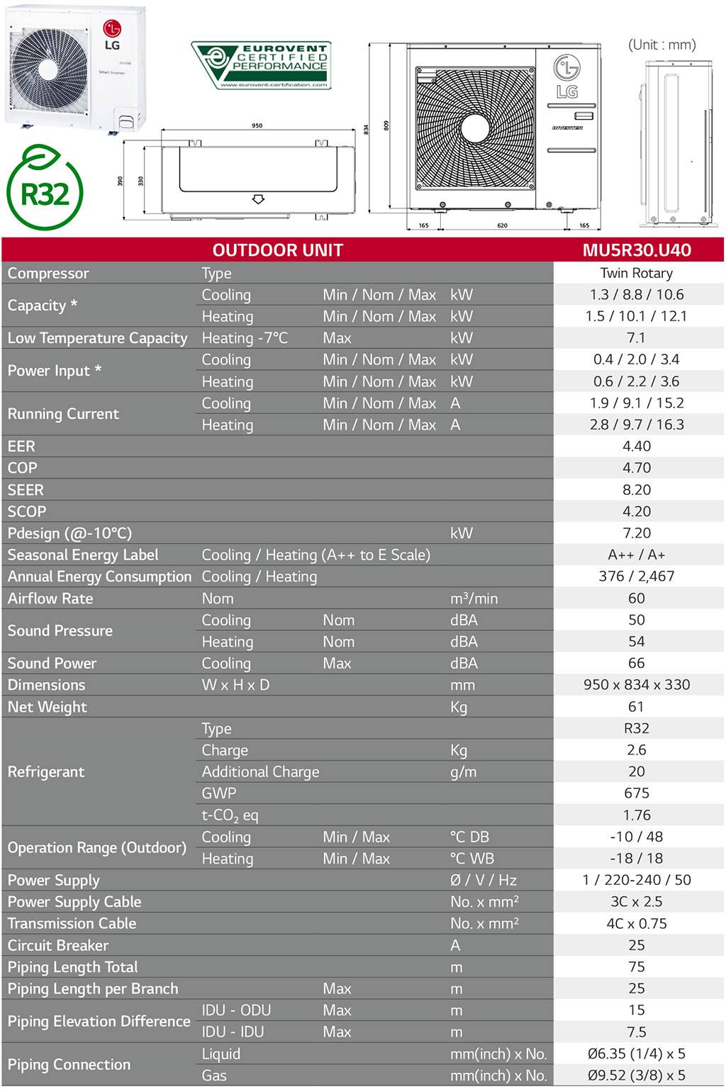 Εξωτερική Μονάδα Multi LG MU5R30U40 R32 Inverter 30000 btu - 34500 btu