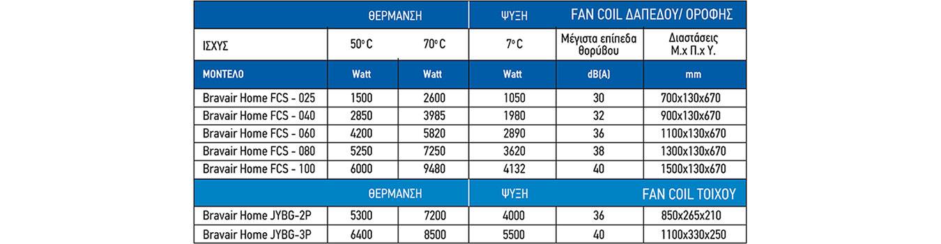 Fan Coil Bravair FCS-040 Slim 2.00-2.85KW Ψύξη - Θέρμανση