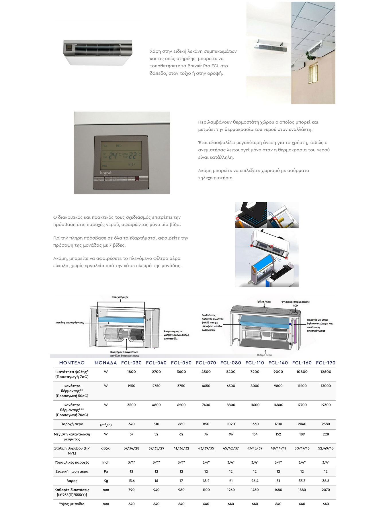 Fan Coil Bravair Pro FCL-030 Ψύξη - Θέρμανση