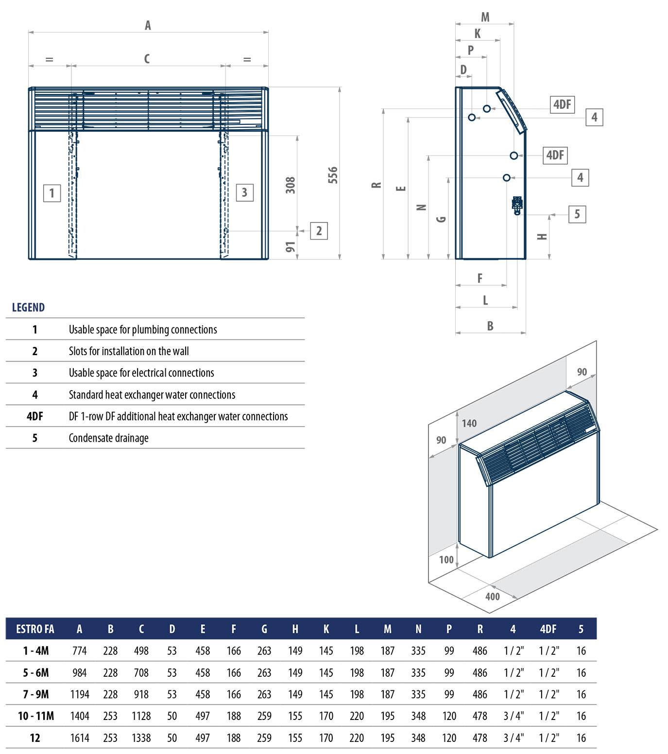 Μονάδες Fan coil ESTRO 1 - 11 kW με φυγοκεντρικό ανεμιστήρα.