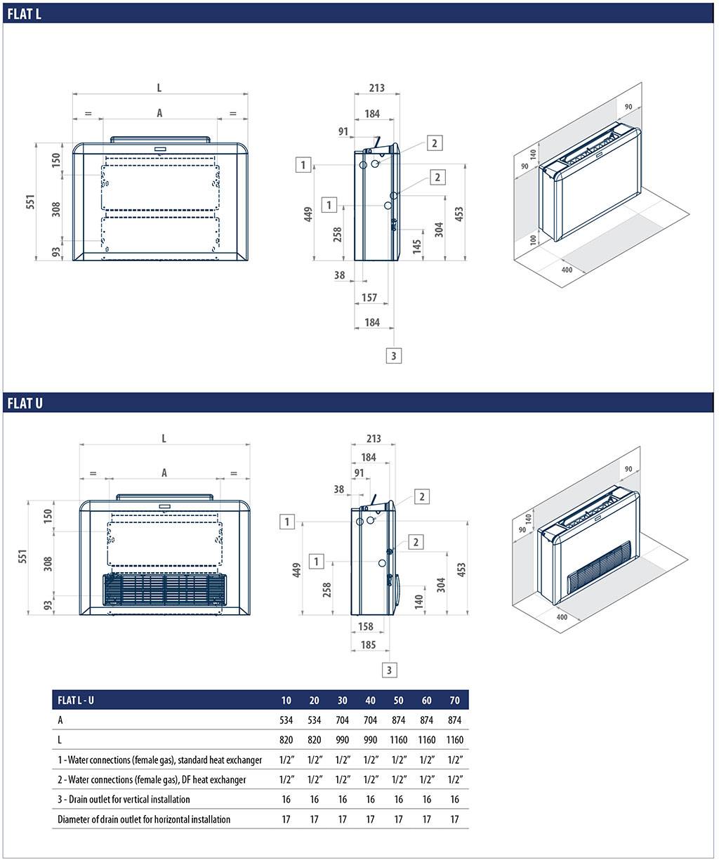 Κομψές μονάδες fan coil FLAT L 2-5 kW με φυγοκεντρικό ανεμιστήρα