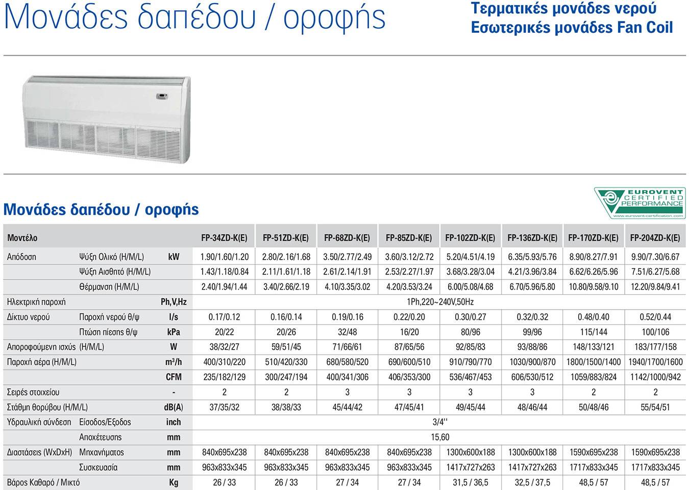 Fan Coil Gree Εμφανές Δαπέδου / οροφής 2.80KW FP-51ZD-K.E