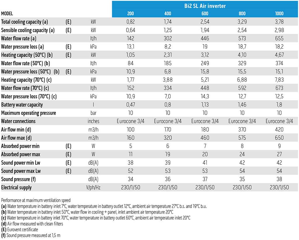 Fan Coil Olimpia Splendid Bi2 SL Air 800 Inverter TR με ψηφιακό χειριστήριο αφής