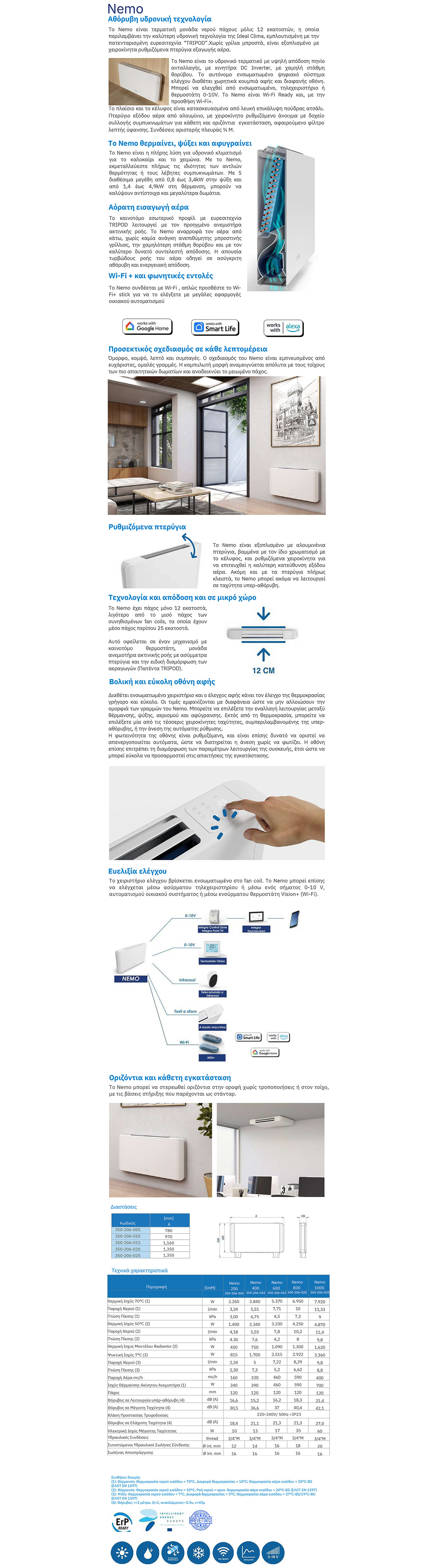 Fancoil Idealclima Nemo 600 δαπέδου Slim