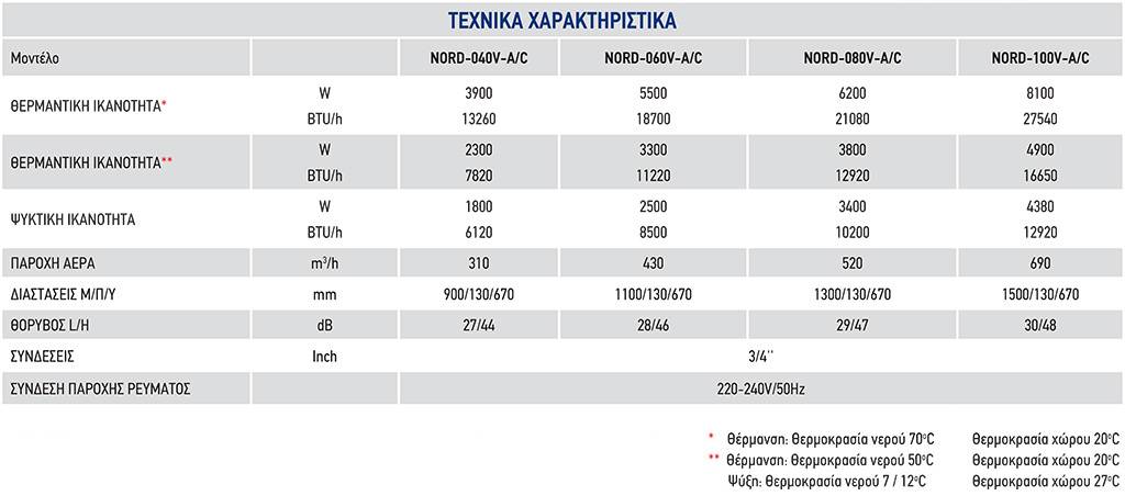 Fancoil Nordstar NORD-040V-A/C Εμφανές Δαπέδου Slim