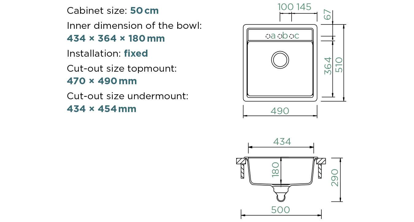 Γρανιτένιος ένθετος νεροχύτης 50cm Schock Cristalite Nemo N-100S Everest