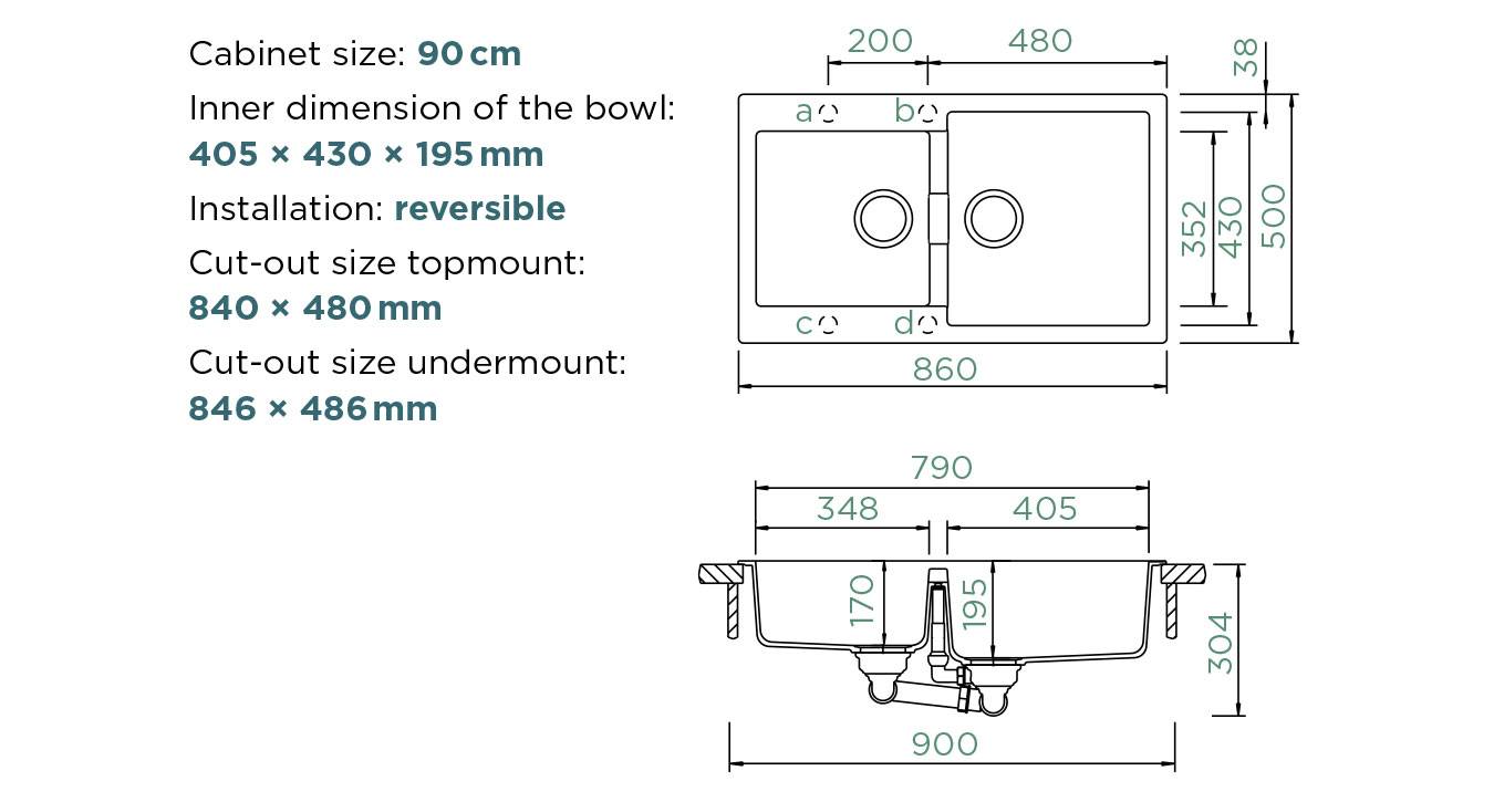 Γρανιτένιος ένθετος νεροχύτης 90cm Schock Cristalite Primus N-200 Concrete/Beton