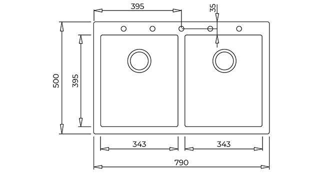 Δυο γούρνες Μ 343mm x Π 395mm x Β 200mm