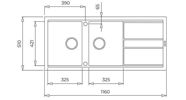 Δυο γούρνες Μ 325mm x Π 421mm x Β 200mm και μια ποδιά