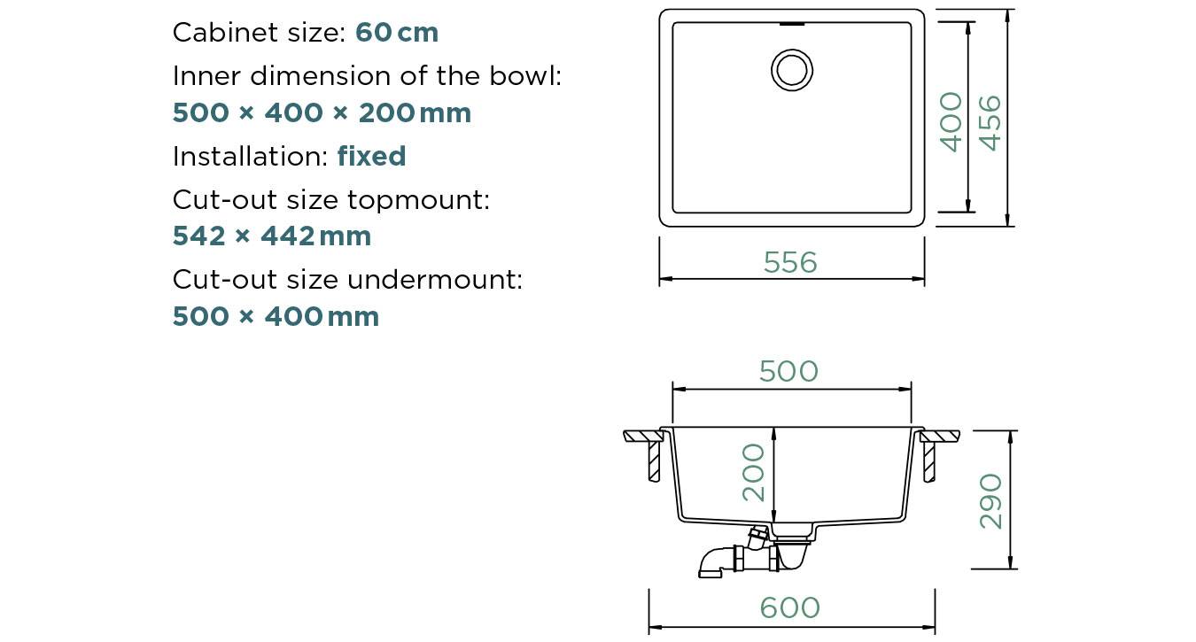 Γρανιτένιος υποκαθήμενος νεροχύτης 60cm Schock Cristalite Brooklyn N-100L Alpina/Superwhite