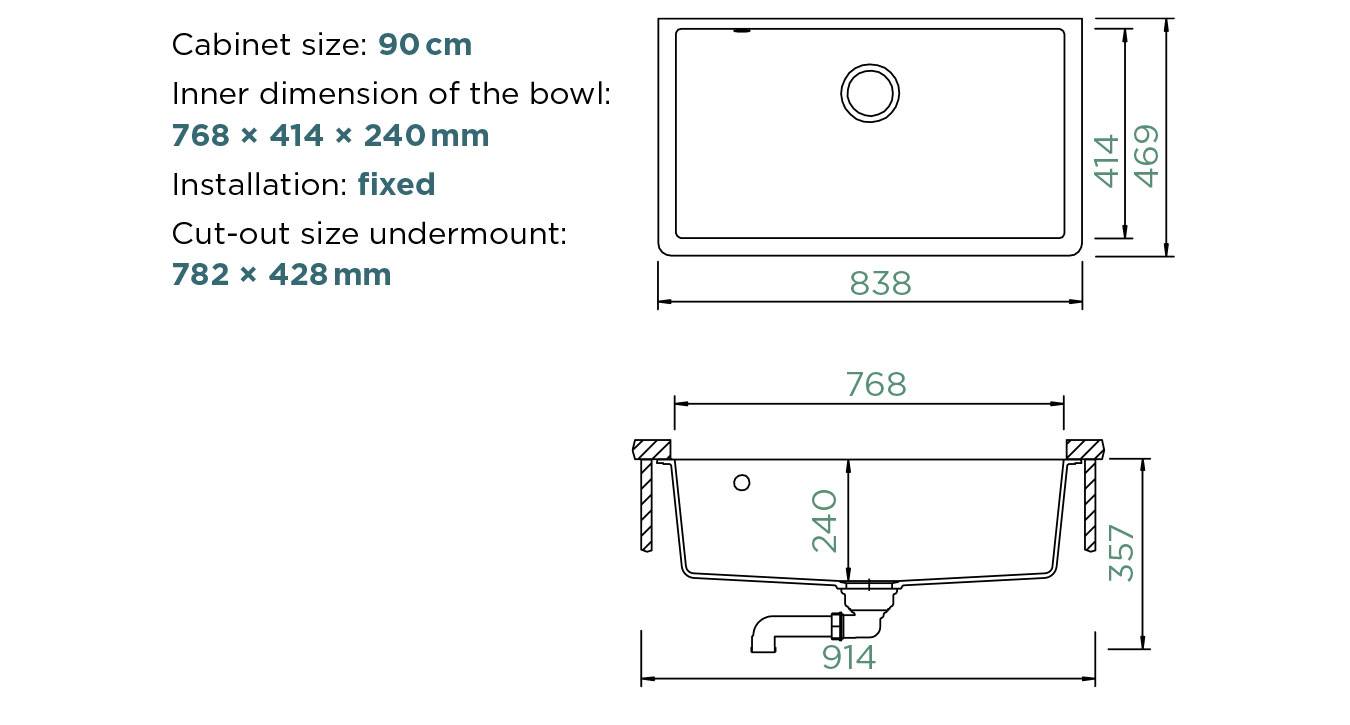 Γρανιτένιος υποκαθήμενος νεροχύτης 90cm Schock Cristadur Montano N-100XLY Puro