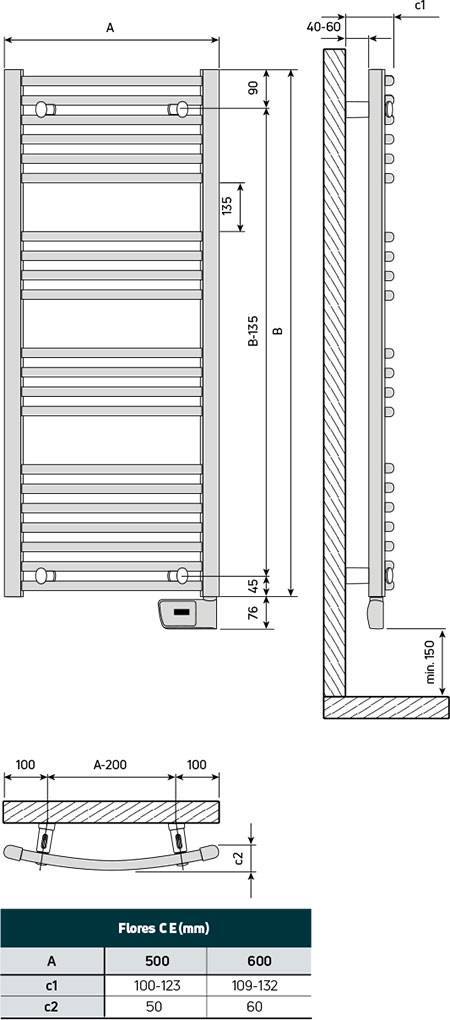 Το Flores C E είναι ένα θερμαντικό σώμα λουτρού σε καθαρά ηλεκτρική έκδοση με καμπυλωτούς, οριζόντια διατεταγμένους σωλήνες από χάλυβα και κάθετους σωλήνες συλλογής με προφίλ D. Μπορεί να τοποθετηθεί ανεξάρτητα από ένα σύστημα κεντρικής θέρμανσης και παρέχει γρήγορη, ανεξάρτητη θέρμανση - ακόμα και τις δροσερές μέρες του καλοκαιριού.