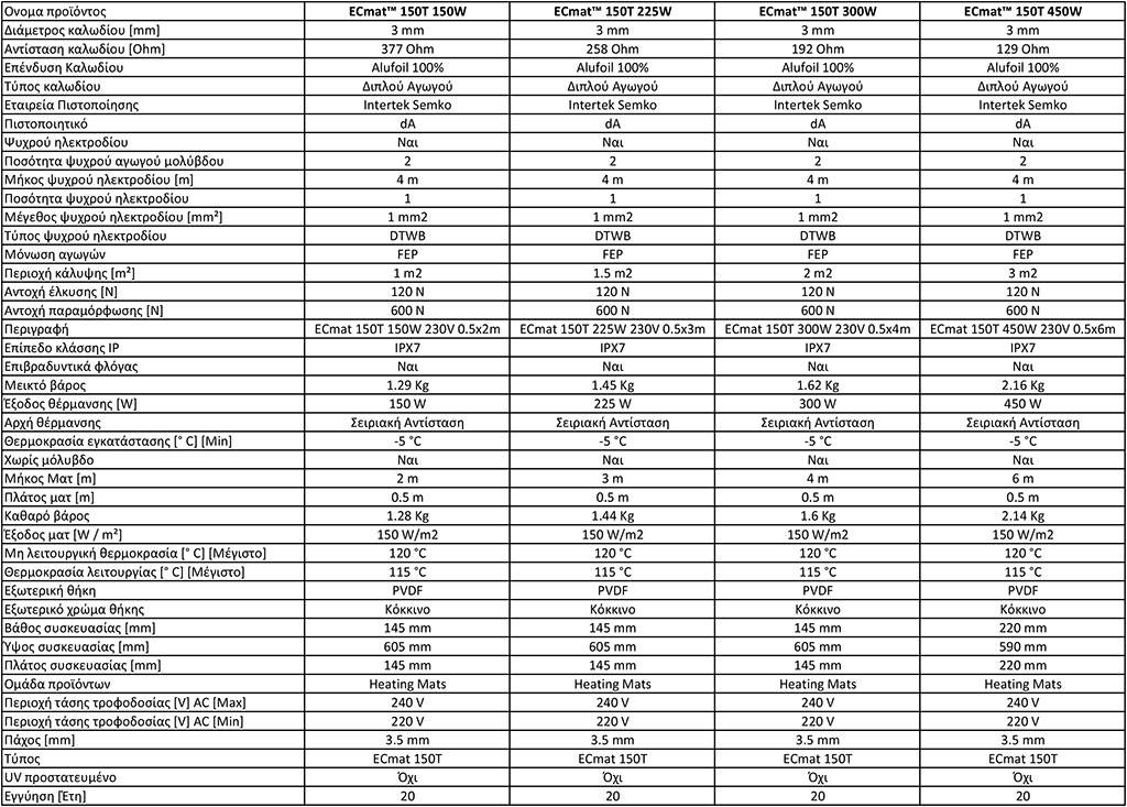 Το Danfoss ECmat™ είναι ένα εξαιρετικά υψηλής ποιότητας θερμαντικό πλέγμα Ολα-Σε-Ενα 360° με αγωγούς, με μόνωση FEP και εξωτερικό περίβλημα κόκκινου PVDF (μη UV σταθερό).