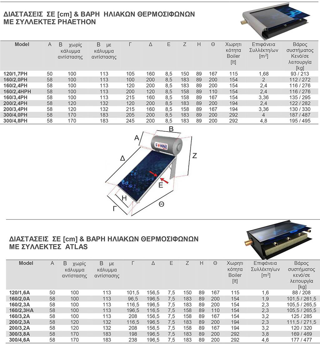 Ηλιακός Θερμοσίφωνας Χαλκού Sonne Phaethon 200lt/2.4m² Διπλής Ενέργειας Επιλεκτικός Συλλέκτης