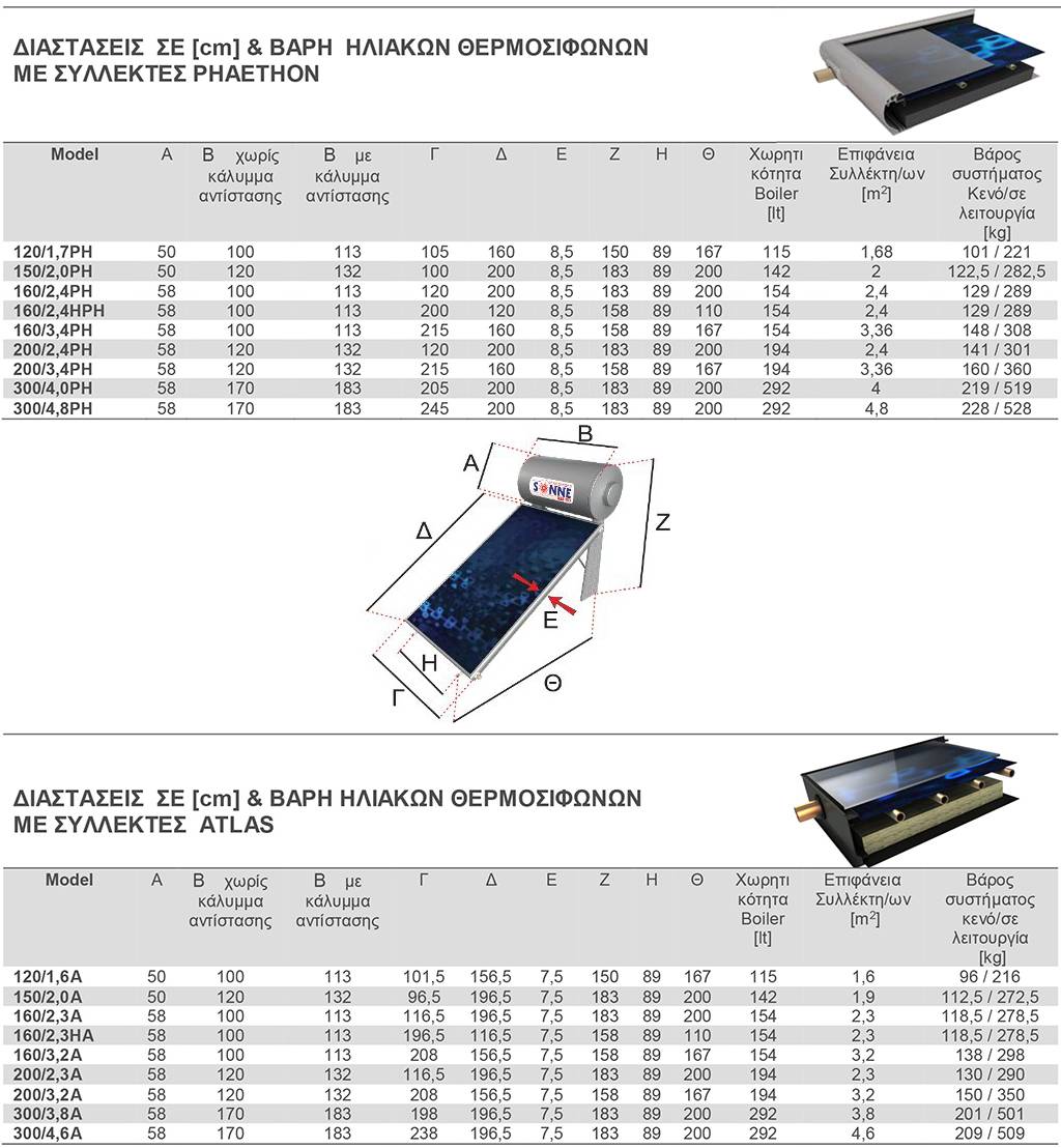 Ηλιακός Θερμοσίφωνας Glass Sonne Phaethon 200lt/2.4m² Τριπλής Ενέργειας Επιλεκτικός Συλλέκτης
