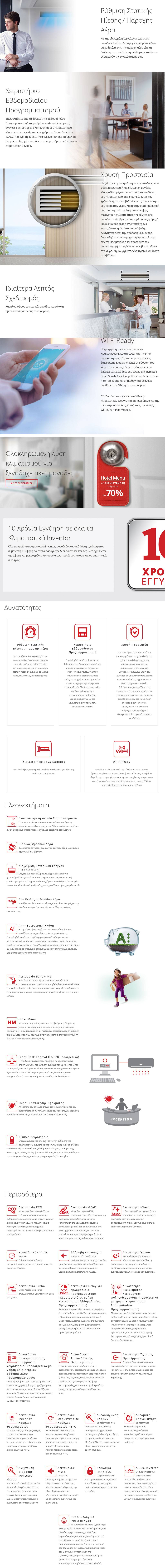 H Inventor παρέχει εγγύηση καλής λειτουργίας 10 (δέκα) ετών για τον συμπιεστή και 5 (πέντε) ετών για τα ηλεκτρικά/μηχανικά μέρη, για όλα τα κλιματιστικά πολυδιαιρούμενα & ημιεπαγγελματικά.