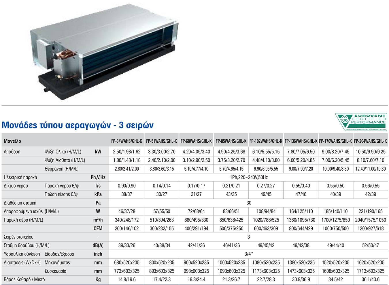 Καναλάτο Κρυφό Κλιματιστικό Οροφής Gree FP-68WAHS/GHL-K DC Inverter