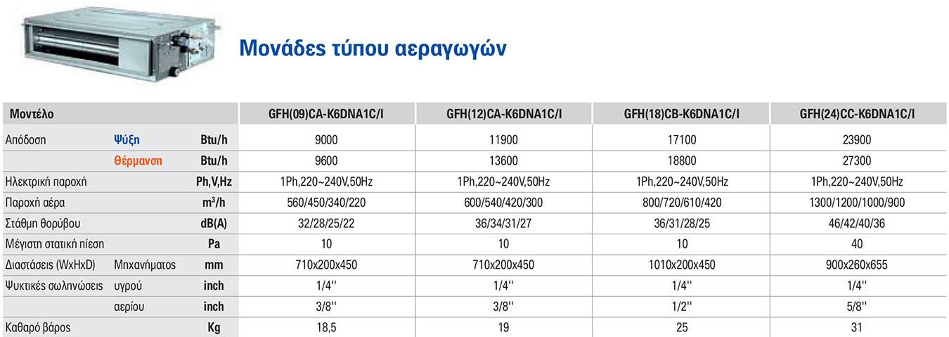 Καναλάτο Κρυφό Ψευδοροφής για Multi Gree 12000btu GFH12CA-K6DNA1C/I