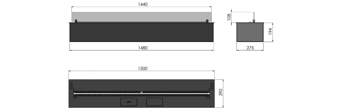 - Διαστάσεις (ΜxΥxΒ): 1500x194x290mm