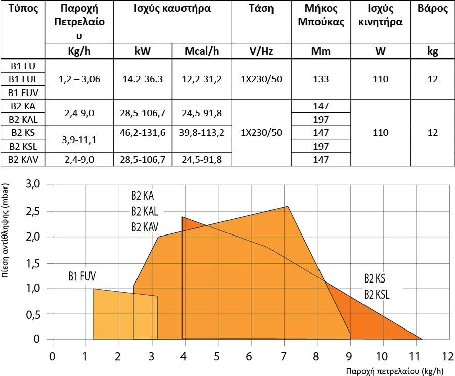 Καυστήρες πετρελαίου για θέρμανση και παραγωγή ζεστού νερού χρήσης σε οικιακές εφαρμογές.