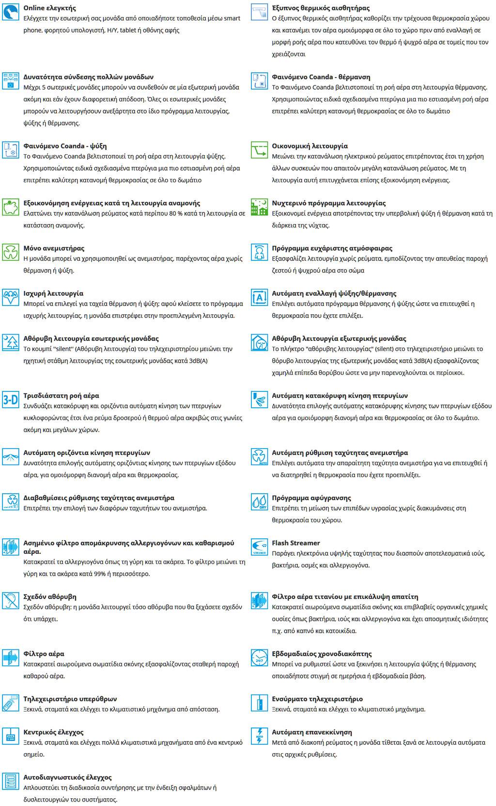 - Ο αποτελεσματικός καθαρισμός του αέρα βελτιώνει την ποιότητα του αέρα σε εσωτερικούς χώρους με την τεχνολογία Flash Streamer της Daikin