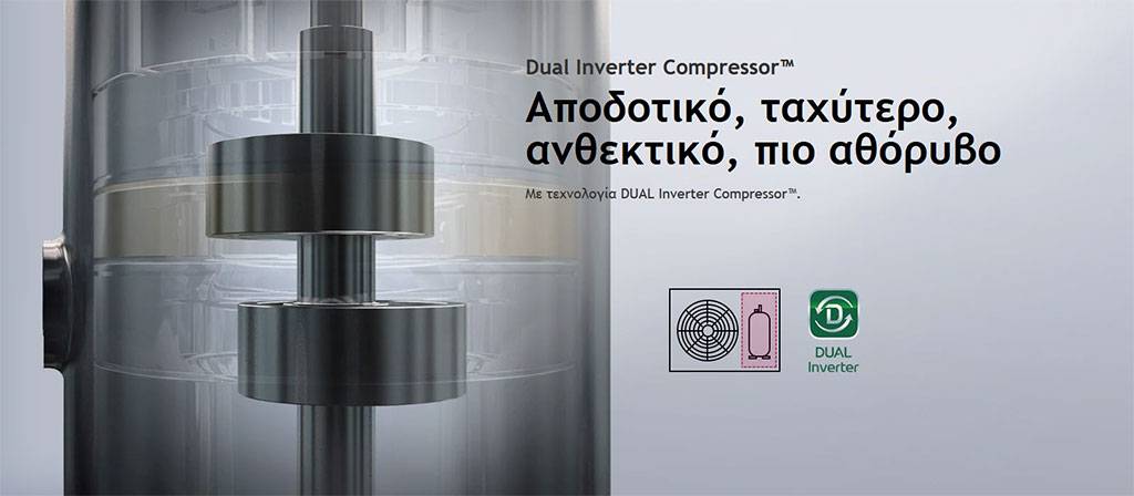 Χάρη στον συμπιεστή μας DUAL Inverter, θα νιώθετε άνετα καθ' όλη τη διάρκεια του χρόνου, ακόμα και σε ακραίες καιρικές συνθήκες.