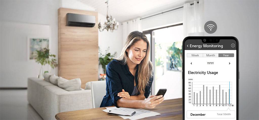 Η εφαρμογή LG ThinQ™ παρακολουθεί διαρκώς το κλιματιστικό σας. Είτε πρόκειται για καθημερινή συντήρηση ή για κάτι άλλο, η εφαρμογή σάς επιτρέπει να παρακολουθείτε εύκολα την κατανάλωση ενέργειας.