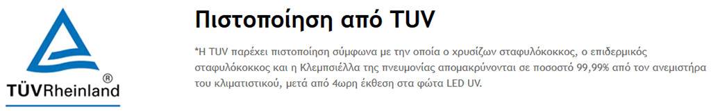 Απομακρύνει τα βακτηρίδια σε ποσοστό 99,99%* με φωτισμό LED UV, που διατηρεί τον ανεμιστήρα