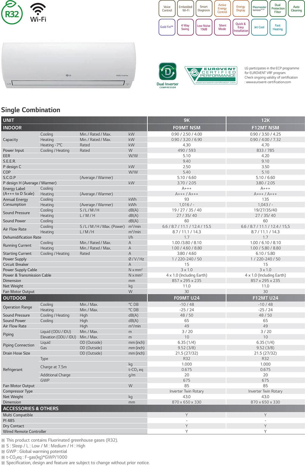 Κλιματιστικό Dual Inverter LG Prestige R32 Ionizer WiFi 12000btu F12MT.NSM-F12MT.U24