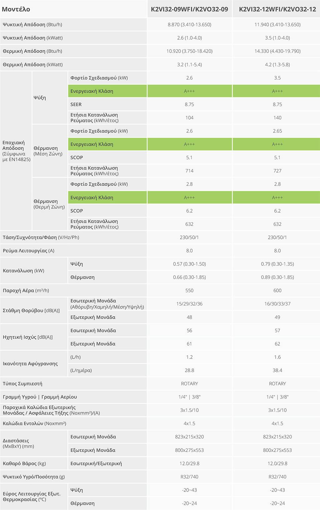 | Τύπος Κλιματιστικού | Τοίχου |