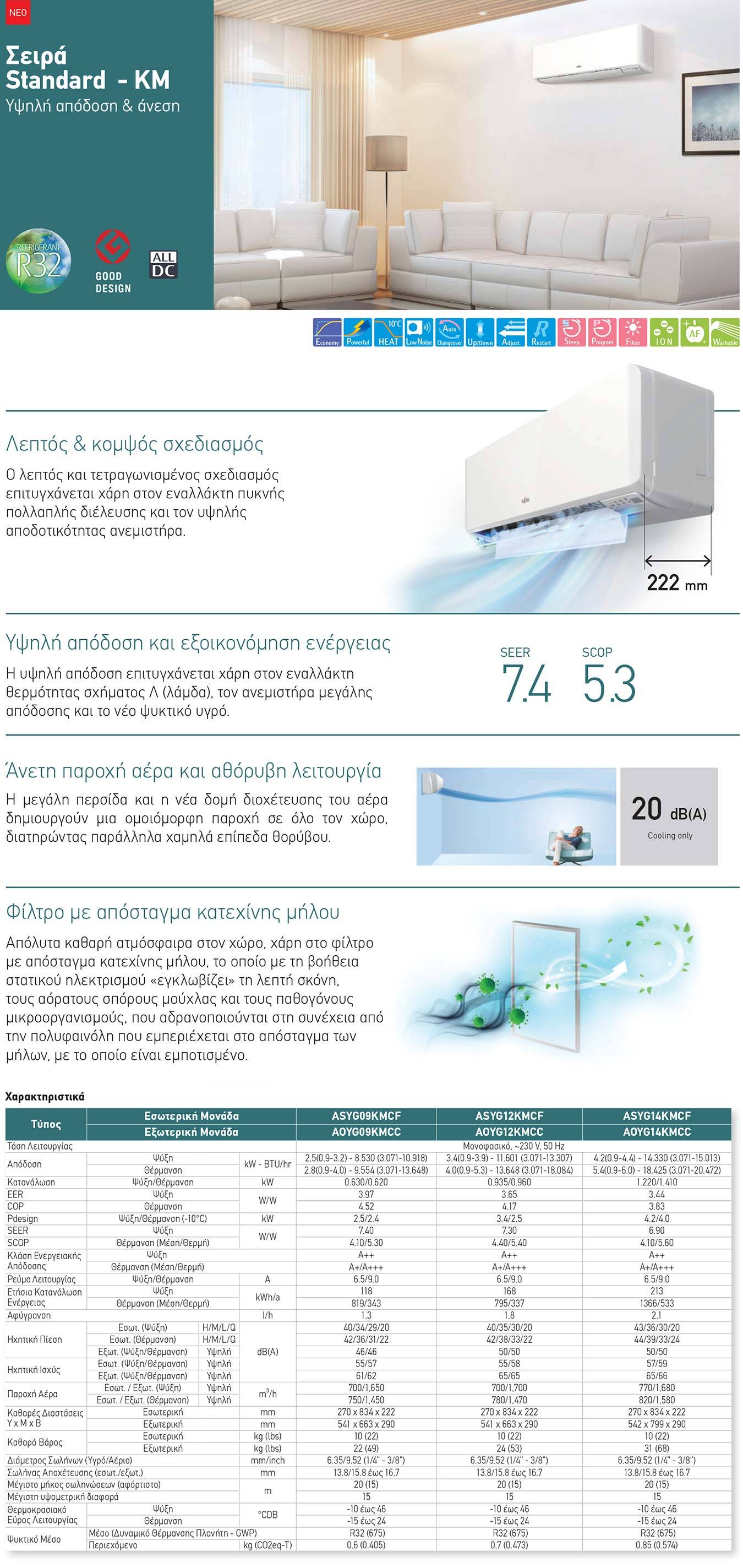 Κλιματιστικό τοίχου Fujitsu KM Series DC Inverter WiFi R32 12000btu ASYG12KMCF.AOYG12KMCC White