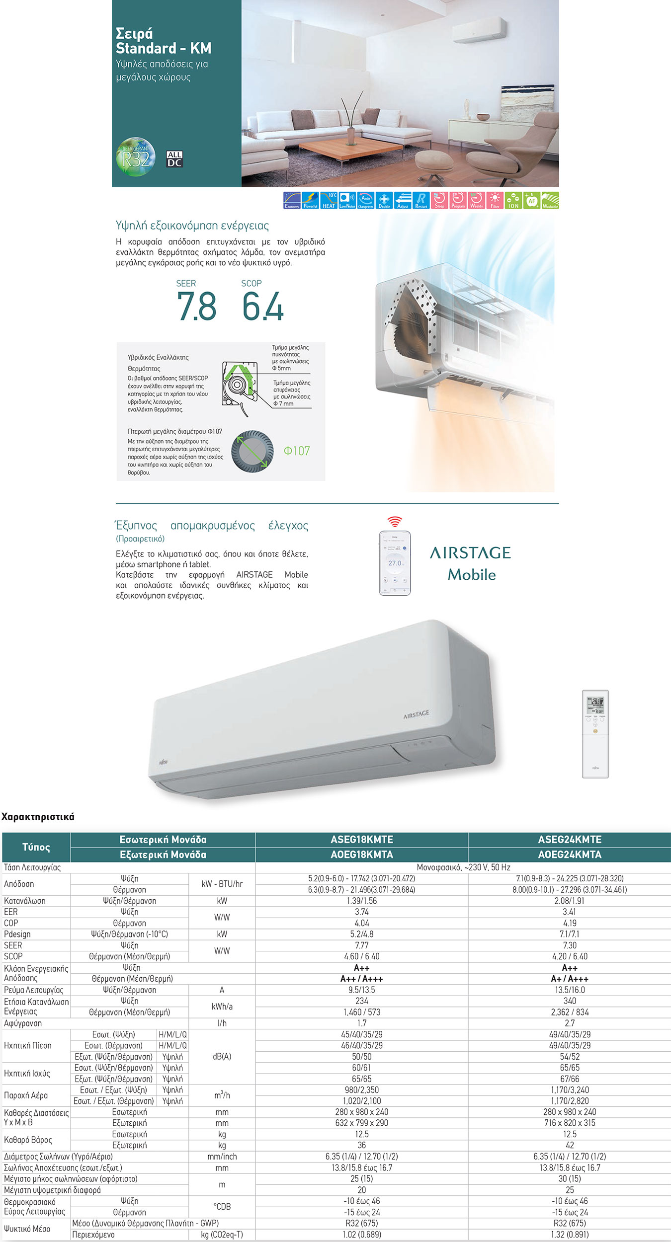 Κλιματιστικό τοίχου Fujitsu KM Series DC Inverter WiFi R32 18000btu ASEG18KMTE.AOEG18KMTA White