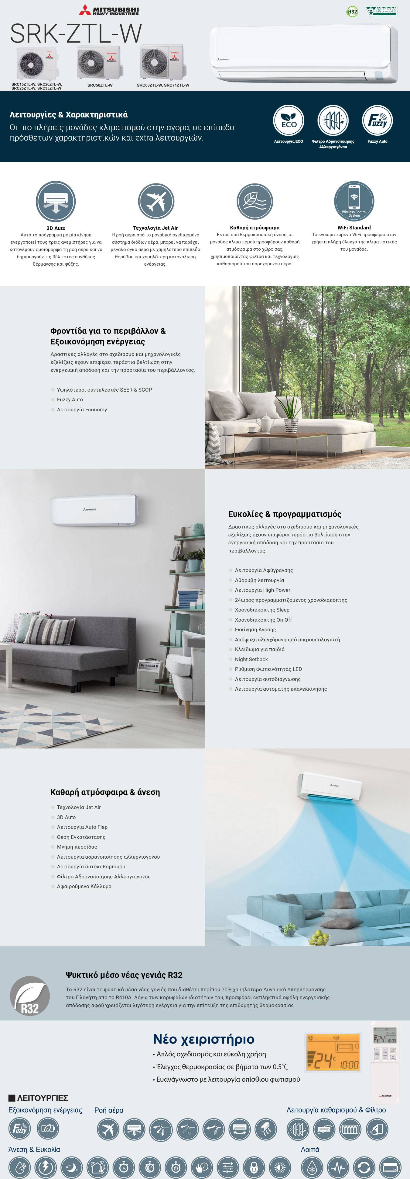 Κλιματιστικό τοίχου Mitsubishi Heavy Industries Plus SRK/SRC50ZTL-W R32 WiFi 17000btu