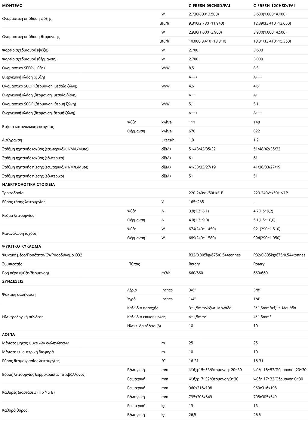 Κλιματιστικό τοίχου TCL C-Fresh 12CHSD.FAI R32 WiFi ION Smart Inverter 12000btu