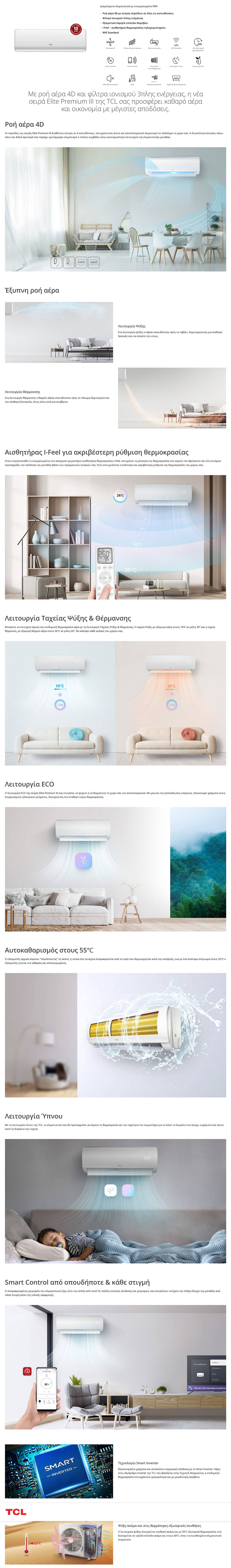 Κλιματιστικό τοίχου TCL Elite Premium III R32 ION 4D Air Flow 18CHSD/XAC1I 18000btu