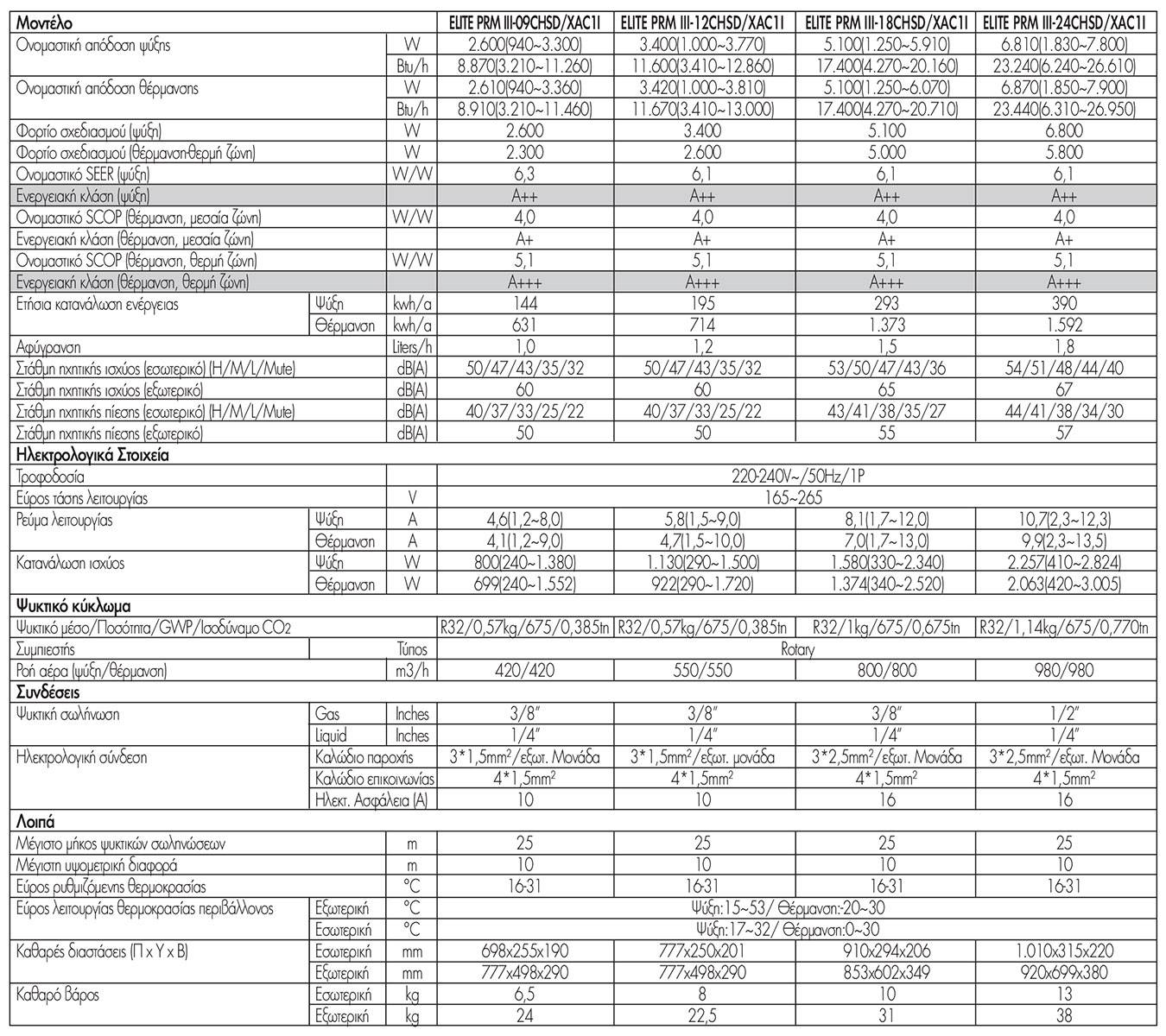 | Τύπος Κλιματιστικού | Τοίχου |