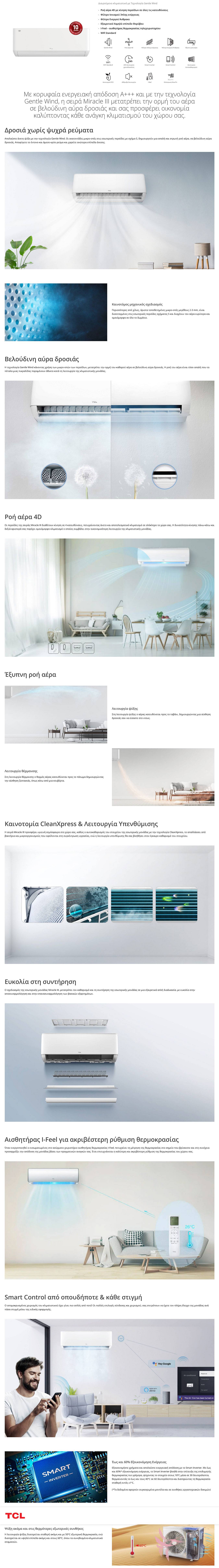 Κλιματιστικό τοίχου TCL Miracle III R32 WiFi ION 4D Air Flow 18CHSD/TPG21I-A 18000btu