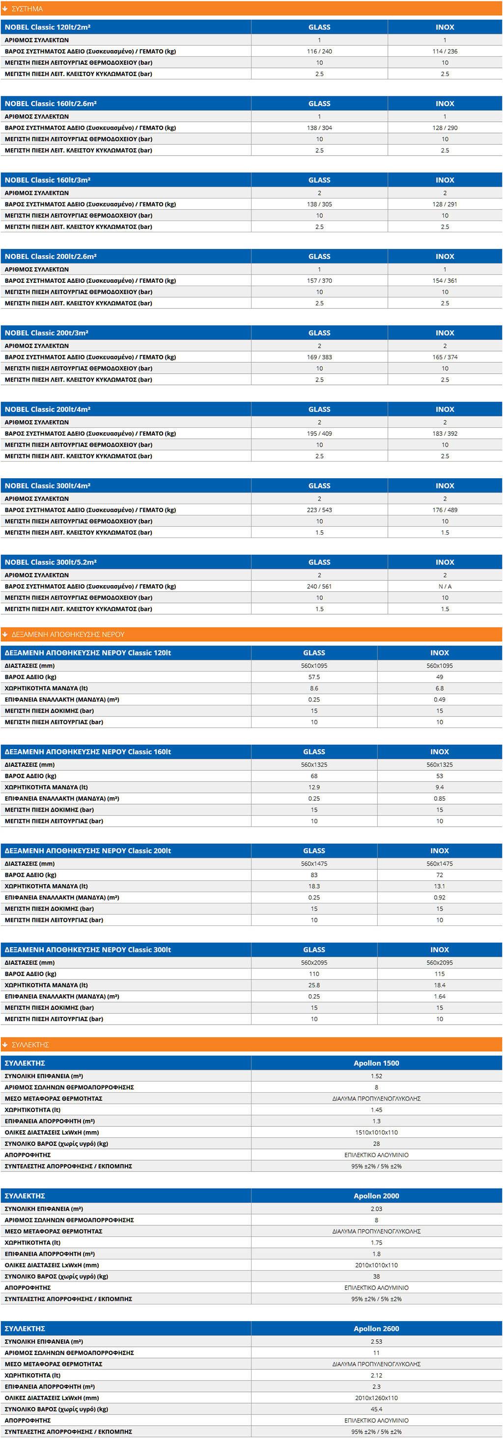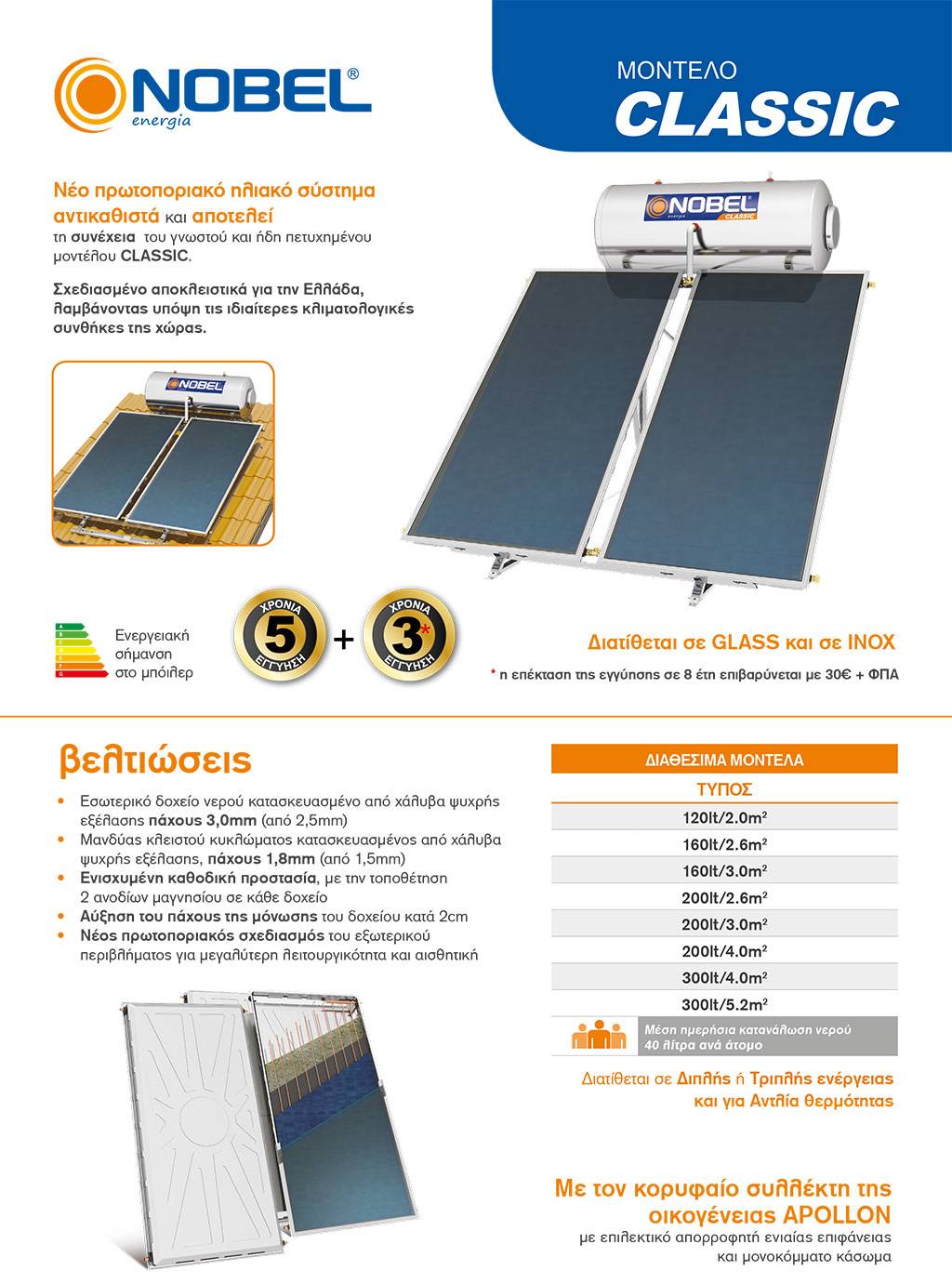 Nobel Classic Inox 160lt/3.0τμ (2x1.5τμ). Τριπλής ενέργειας. Βάση ταράτσας