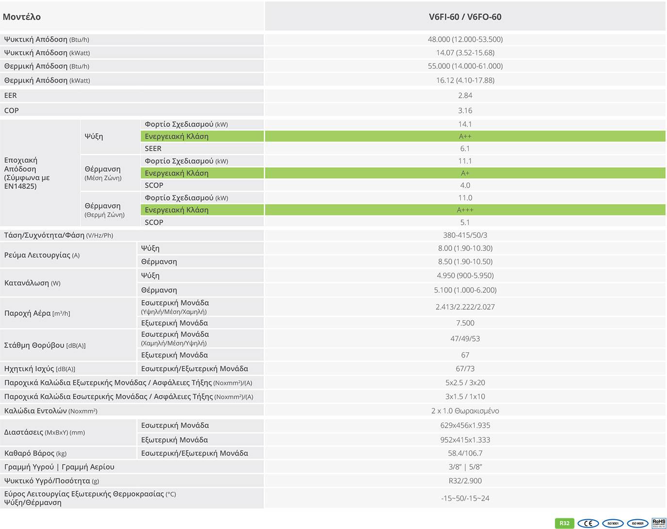 Ντουλάπα Εμφανούς Τύπου Inventor R32 V6FI-60.V6FO-60 48000btu