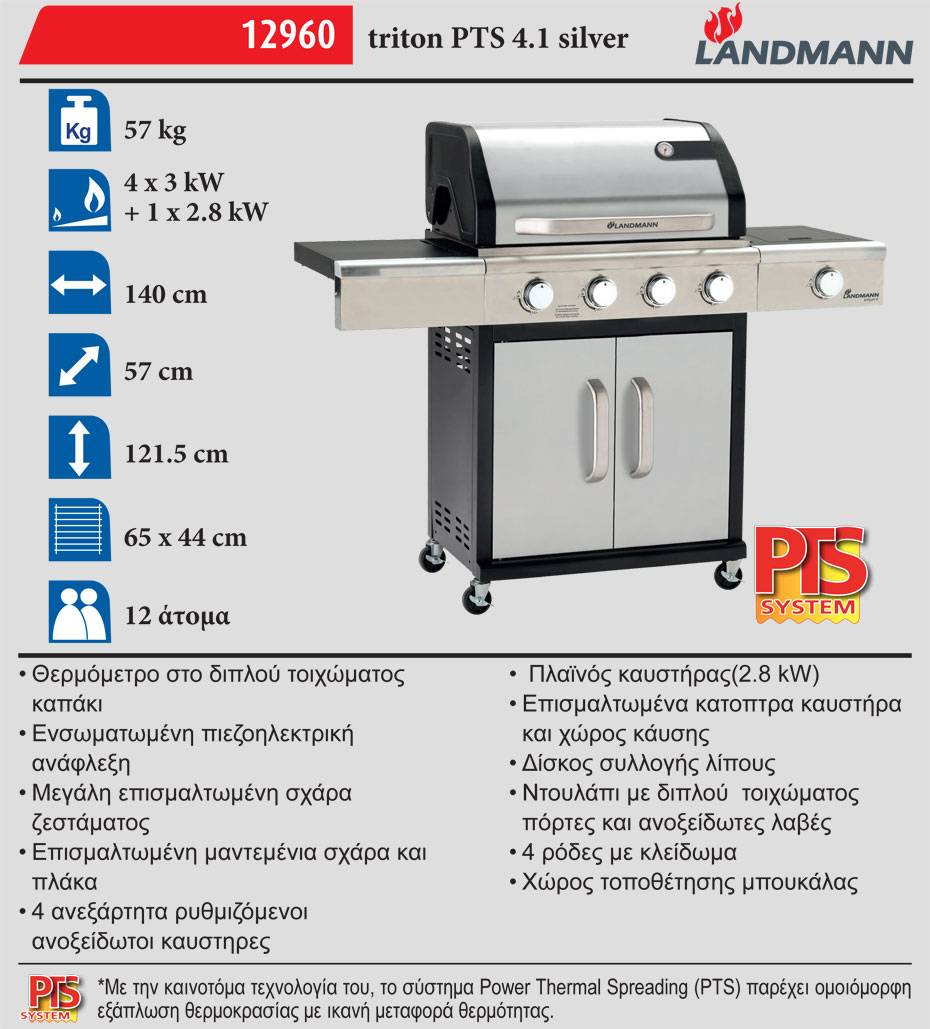 Ψησταριά υγραερίου LANDMANN 12960 - Triton PTS 4.1 ασημένια