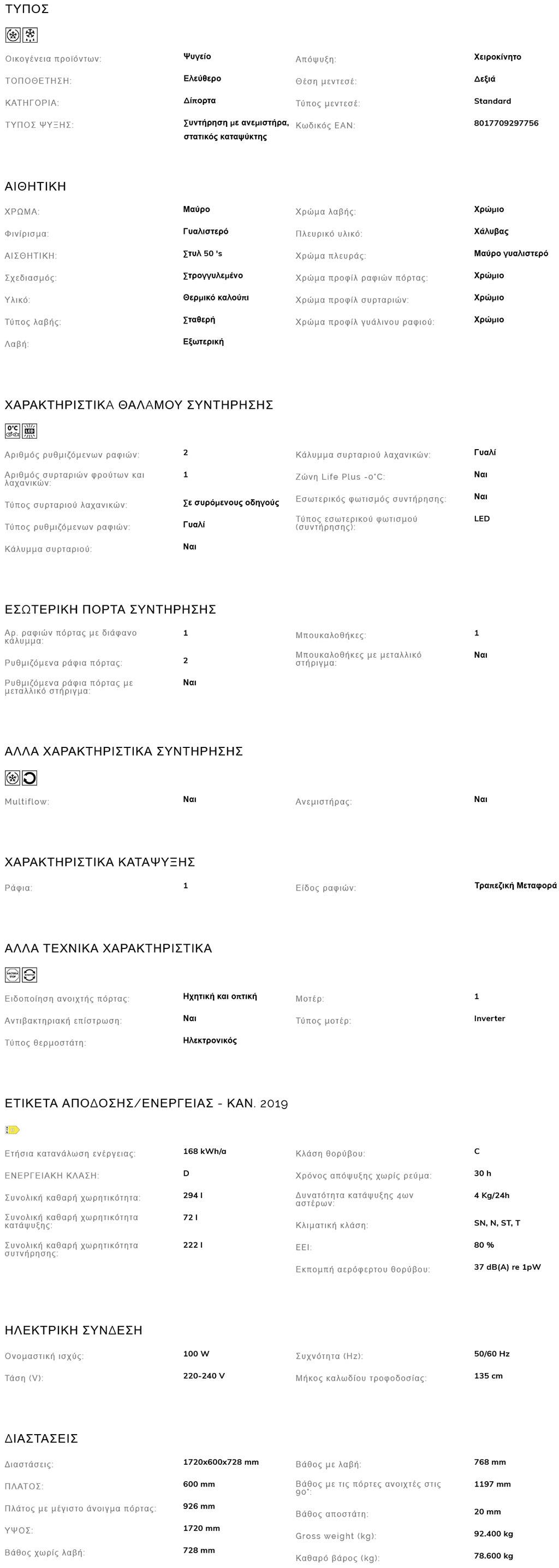 Ψυγείο Smeg FAB30RBL5 294L Μαύρο Δεξί