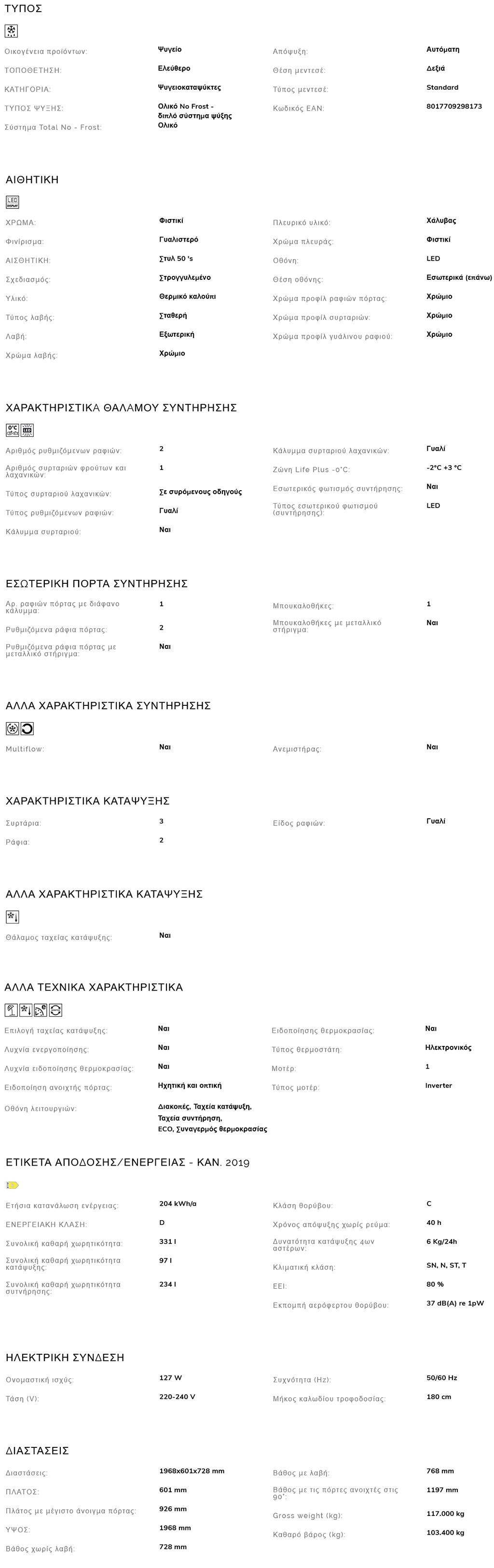 Ψυγειοκαταψύκτης Smeg FAB32RPG5 331L Φιστικί Δεξί