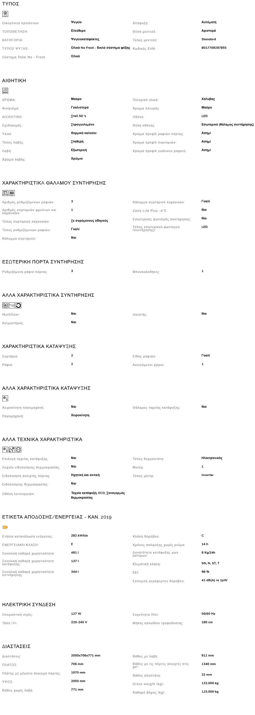 Ψυγειοκαταψύκτης Smeg FAB38LBL5 481L Μαύρο Αριστερό