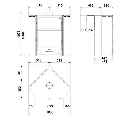Δοχείο Στάχτης. Το αφαιρούμενο δοχείο στάχτης εγγυάται μια καθαρή και βολική διαχείριση της τέφρας. Έλεγχος αέρα. Η καύση ρυθμίζεται από τους πρωτεύοντες και δευτερεύοντες ελέγχους αέρα. Κεραμικό γυαλί. Εξαιρετική αντίσταση στην έντονη ζέστη και τις απότομες αλλαγές θερμοκρασίας. Κατασκευασμένο από χυτοσίδηρο. Ο Χυτοσίδηρος εγγυάται ένα υψηλής ποιότητας φινίρισμα, υψηλή ανθεκτικότητα και τη βέλτιστη μεταφορά θερμότητας. Airwash σύστημα καθαρισμού τζαμιών. Ρεύματα αέρα σαρώνουν το εσωτερικό μέρος του γυαλιού, διατηρώντας το καθαρό από την στάχτη και την σκόνη. Ονομαστική θερμική ισχύς: 12KW Καύσιμο: Ξύλο Βασικό Υλικό: Ατσάλι Βασικό Υλικό Φούρνου: Ανοξείδωτο Ατσάλι Υλικό Εστίας: Χυτοσίδηρος / Βερμικουλίτης Πρωτεύων έλεγχος αέρα: Ρυθμιζόμενος Δευτερεύων έλεγχος αέρα: Ρυθμιζόμενος Ράγες σχάρας: Ναί Αφαιρούμενες σχάρες: Ναί Δοχείο Στάχτης: Ναί Θερμόμετρο: Ναί Πιστοποίηση ΕΚ: EZKA/11/037-10 Ευρωπαικός κανονισμός: EN 13240 / BlmSchV Ονομαστική θερμική ισχύς: 12kW Αποδοτικότητα: 80,1% Εκπομπές διοξειδίου του άνθρακα (13% O2 Vol.%): 0,09% Βάρος: 158kg Διαστάσεις εξόδου καπνοδόχου: Ø 150mm Διαστάσεις: