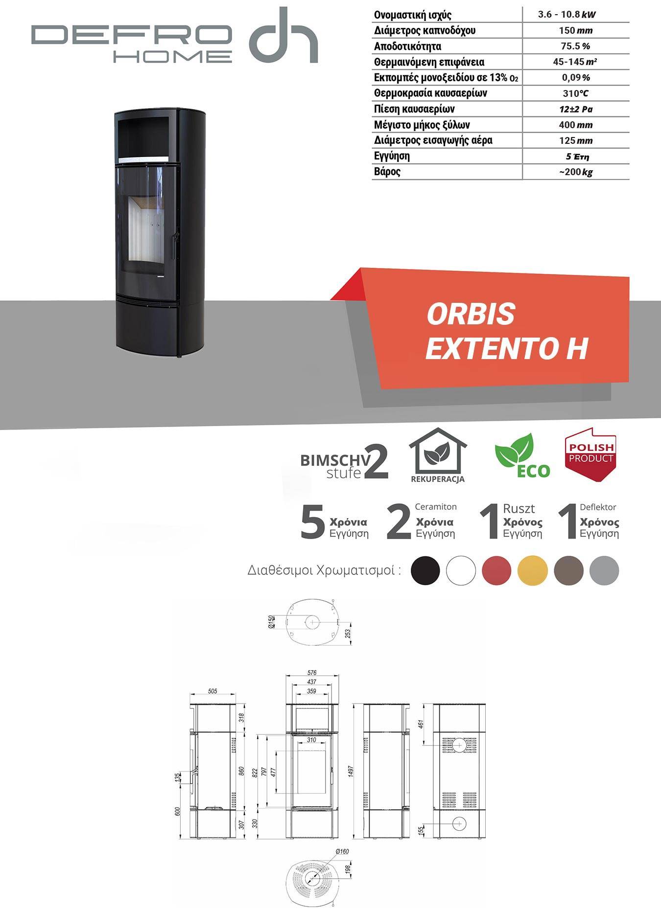 Σόμπα ξύλου Defro Orbis Extento H