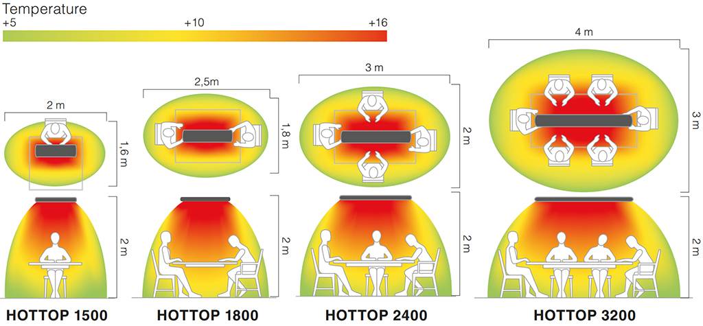 Ιδανικό για θέρμανση υπαίθριων χώρων που προστατεύονται από τον αέρα, όπως βεράντες, υπαίθρια καθίσματα, βεράντες ή εσωτερικοί χώροι όπως θερμοκήπια, χώροι ευεξίας κλπ.