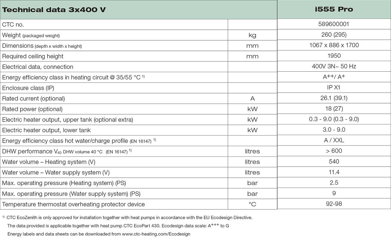 Το CTC EcoZenith i555 Pro είναι ένα όλα-σε-ένα θερμοδοχείο με ενσωματωμένο, έξυπνο έλεγχο.